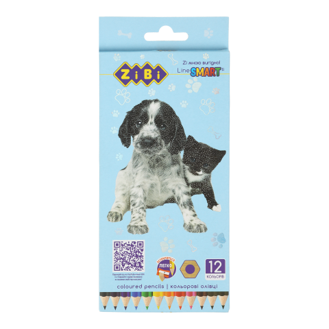 Олівці кольорові, 12кол., СОБАКИ ТА КОТИ, шестигранний, SMART Line