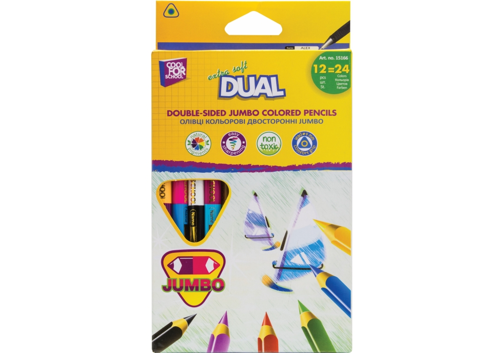 Олівці кольорові "Dual Jumbo Extra Soft " 12 шт, двосторонні, тригранні