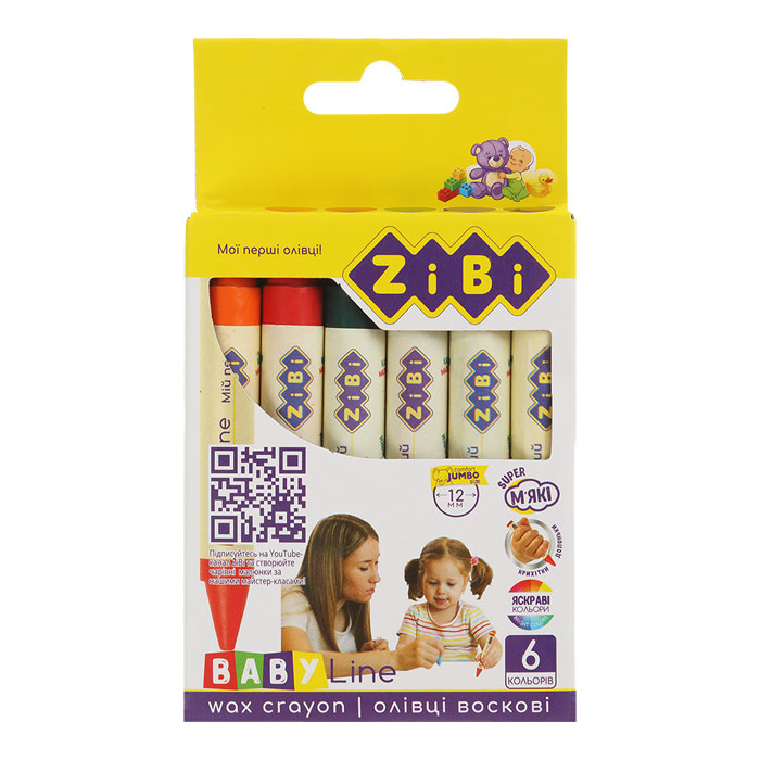 Олівці воскові, 6 кольорів, круглий корпус, ZiBi