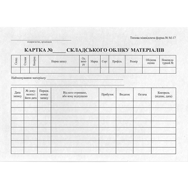 Картка складського обліку №17 А5 картон арк.