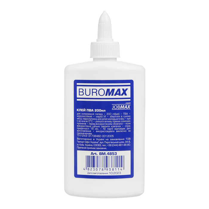 Клей ПВА 200мл супер-ковпачок, JOBMAX, BM.4853, BUROMAX