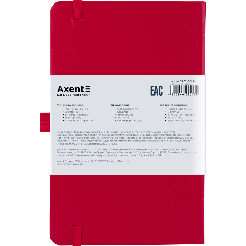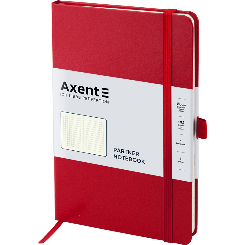 Книга записна 125х195 мм, 96 арк, клітинка, кремовий папір, тверда вінілова обкладинка, колір червоний, Partner