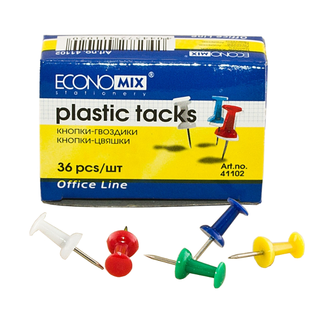 Кнопки-гвоздики кольорові, картонна коробка, 36шт, ECONOMIX