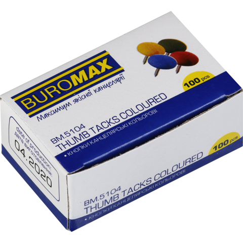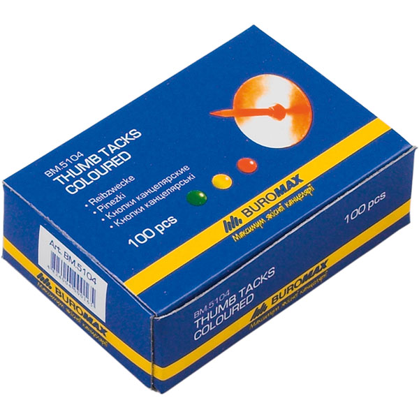 Кнопки нікельовані кольорові, картонна коробка 100шт, BUROMAX