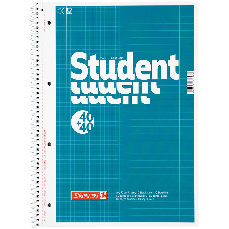 Коледж-блок А4, 80 арк, лінія + клітинка, спіраль збоку, DUO BRUNNEN