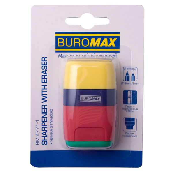 Гумка з точилкою Rainbow, Rubber Touch 2 отвори BUROMAX