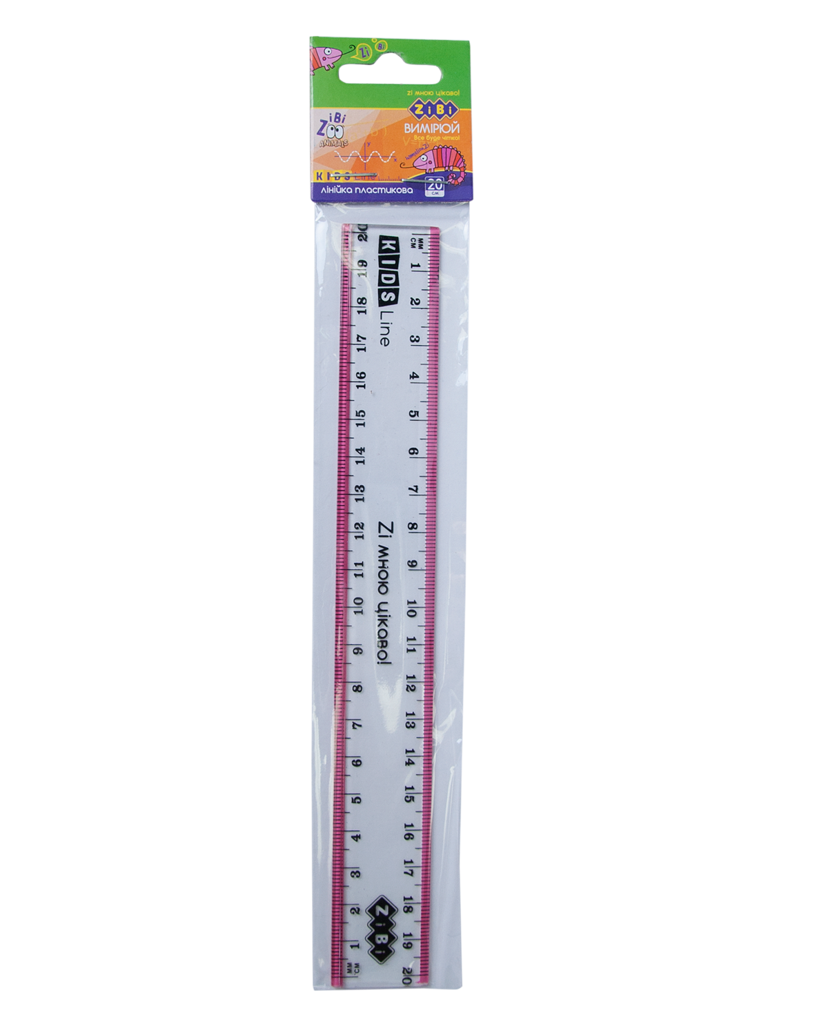 Лінійка пластикова 20см прозора з рожевою смужкою, блістерна упаковка ZiBi