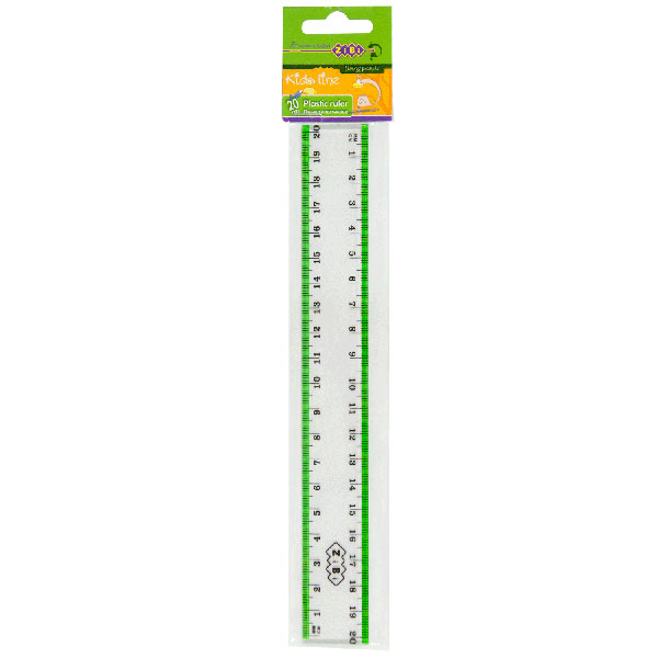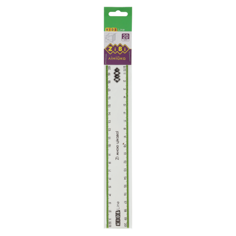 Лінійка пластикова 20см прозора із салатовою смужкою, блістерна упаковка ZiBi