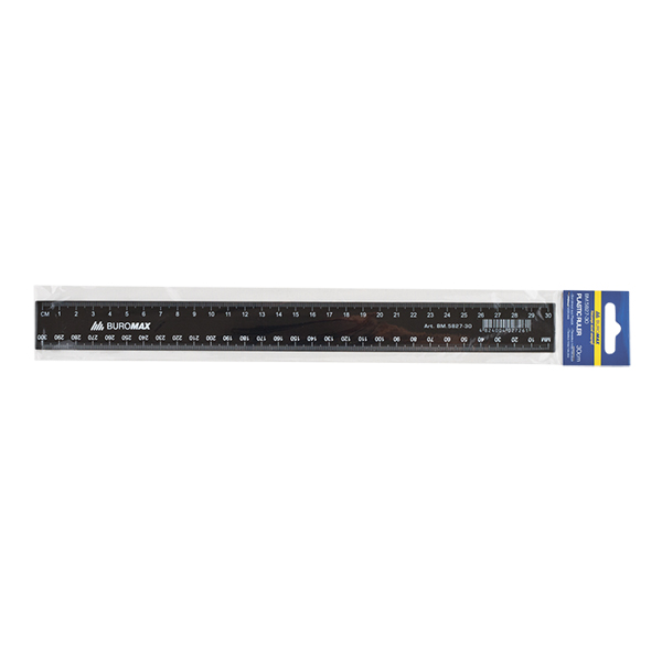 Лінійка пластикова 30см, блістерна упак., чорна, BUROMAX