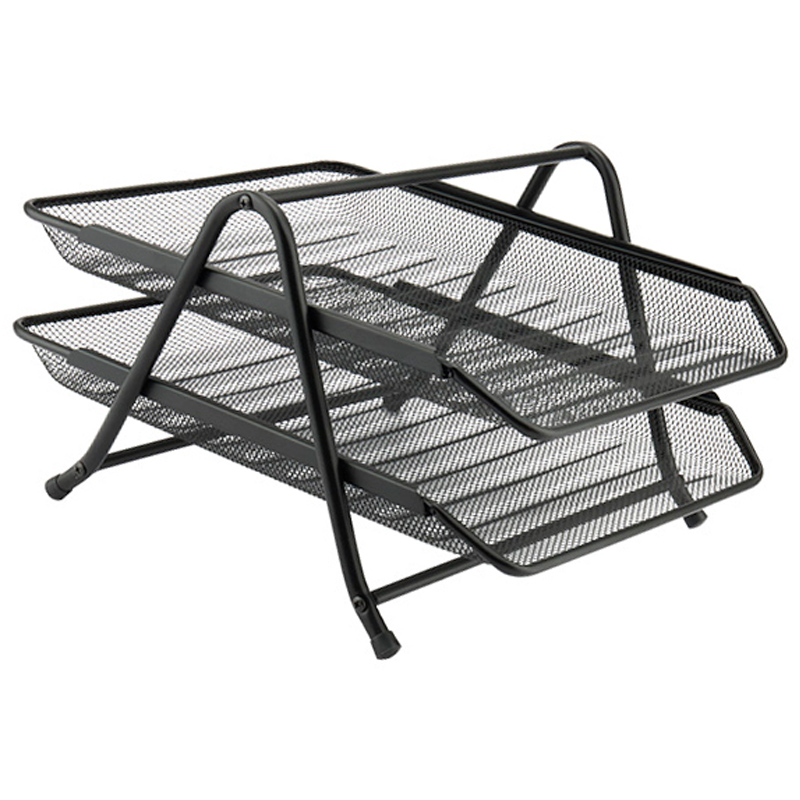 Лоток горизонтальний на 2 відділення, металева сітка, 203x295x350мм, чорний, Axent