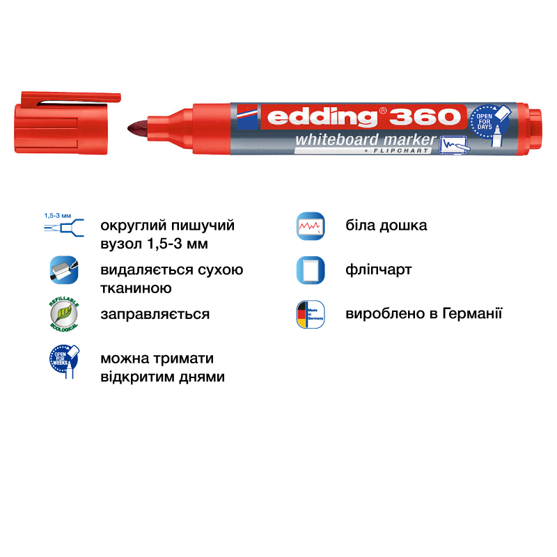 Маркер для дошок 1,5-3 мм кулеподібний, червоний, E360 EDDING
