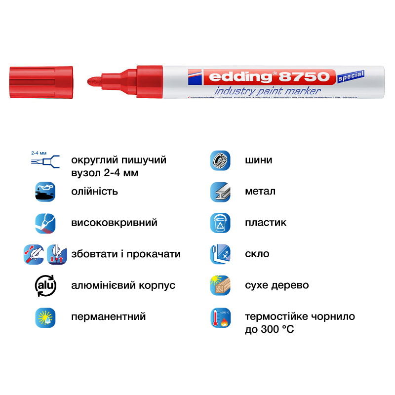 Маркер промисловий 2-4 мм PAINT, червоний, Е-8750 EDDING
