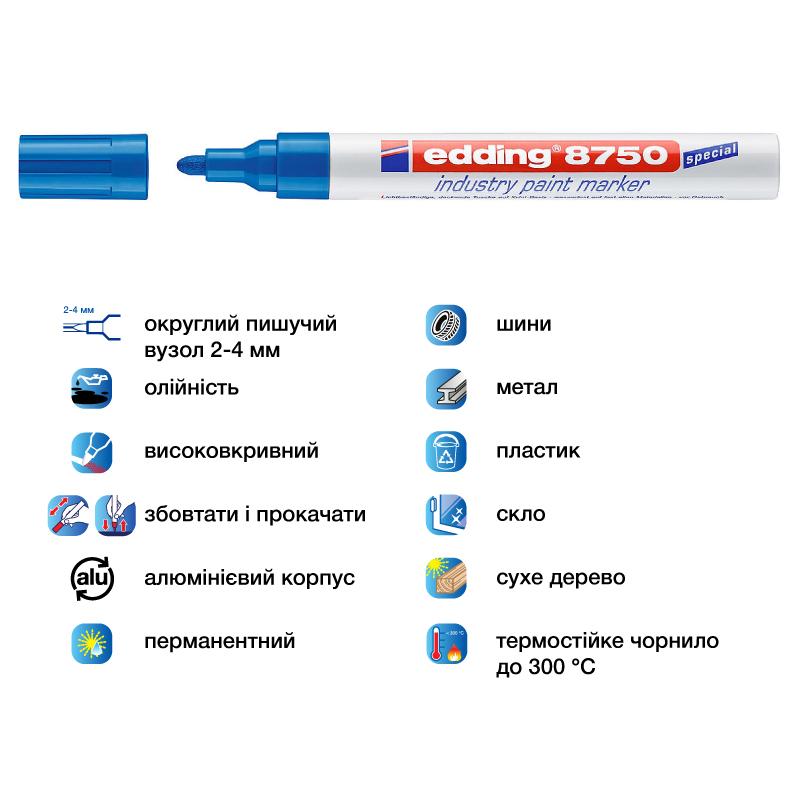 Маркер промисловий 2-4 мм PAINT, синій, Е-8750 EDDING