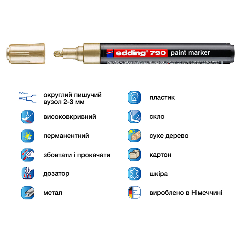 Маркер лак 2-3 мм PAINT, кулеподібний, золото, Е790 EDDING
