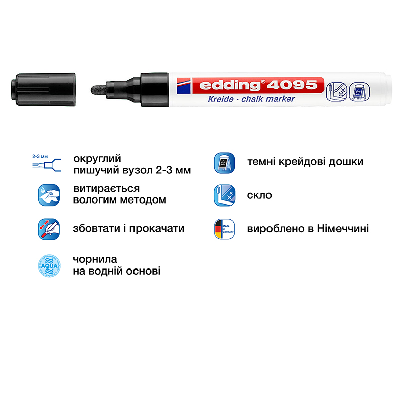 Маркер крейдяний 2-3 мм, Е4095 чорний EDDING