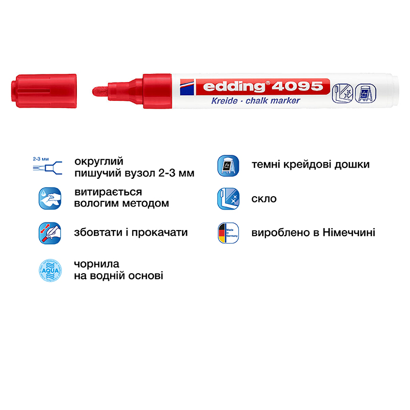 Маркер крейдяний 2-3 мм, Е4095 червоний EDDING