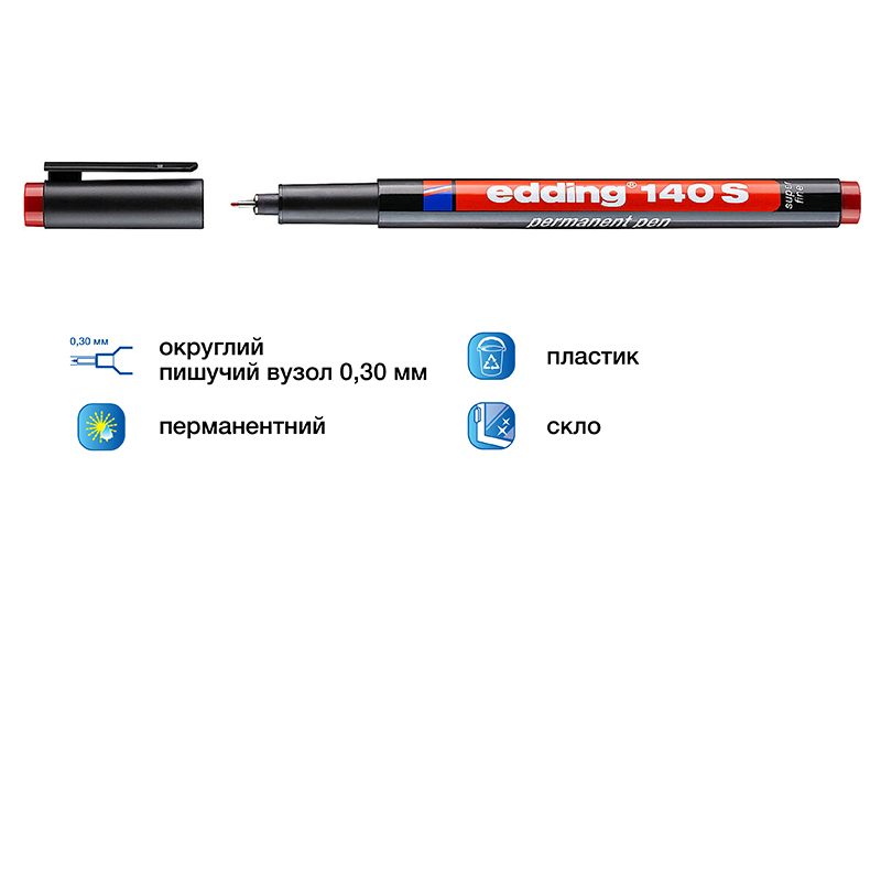 Маркер перманентний для плівок 0,3 мм, червоний, ОНР Е140 S EDDING