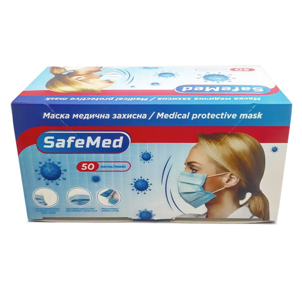 Маска захисна трьохшарова одноразова, 50 шт., SAFEMADE