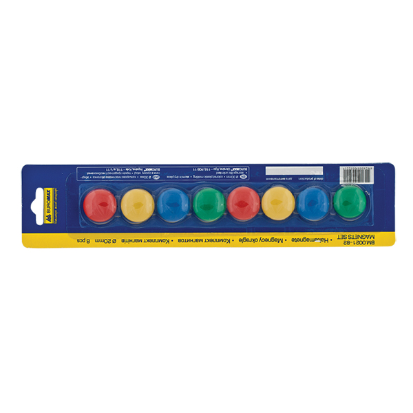 Набір магнітів для дошок d-20 мм, 8 шт., колір асорті, Buromax