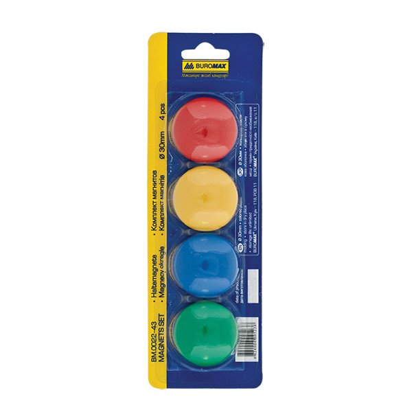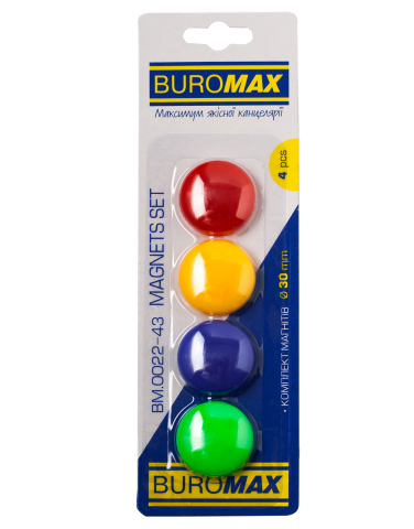 Набір магнітів для дошок d-30 мм, 4 шт., колір асорті, BM.0022-43 Buromax