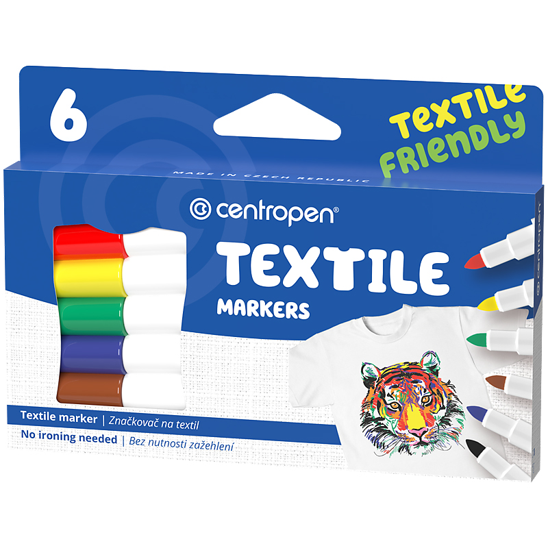 Набір текстильних маркерів 2 мм, кулевидних, 6 кол., 2739.6 по тканині CENTROPEN