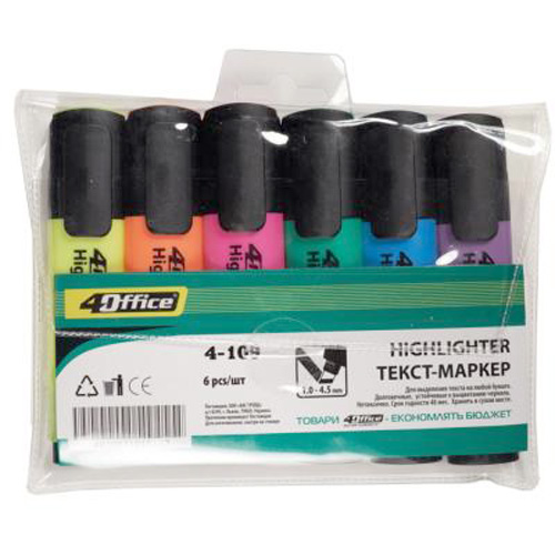 Набір текстових маркерів 1-4,5 мм, 6 кольорів, 4-109/6, 4OFFICE