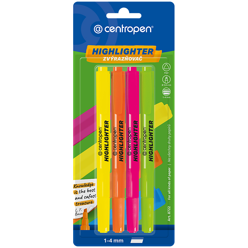 Набір текстових маркерів 1-4 мм FAX, 4 кольори, 8722/4, CENTROPEN