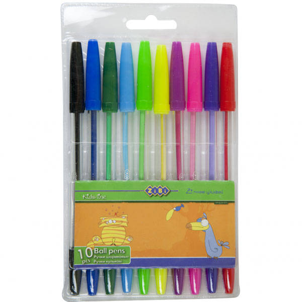 Набір ручок кулькових 0,7 мм, 10 кол., асорті, ZIBI