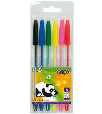 Набір ручок кулькових 0,7 мм, 6 кол., асорті, ZIBI