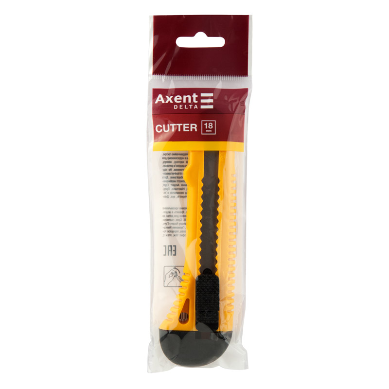Ніж канцелярський 18 мм, металева направляюча, корпус жовтий, AXENT
