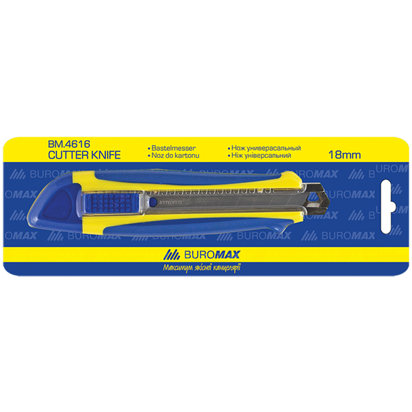 Ніж канцелярський 18 мм, металева направляюча, пластиковий корпус, з гумовими вставками, асорти BUROMAX