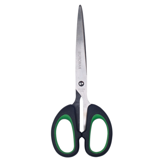 Ножиці канцелярські 20,7см, пластикові ручки з прогумованими вставками, Jobmax, зелений, BUROMAX
