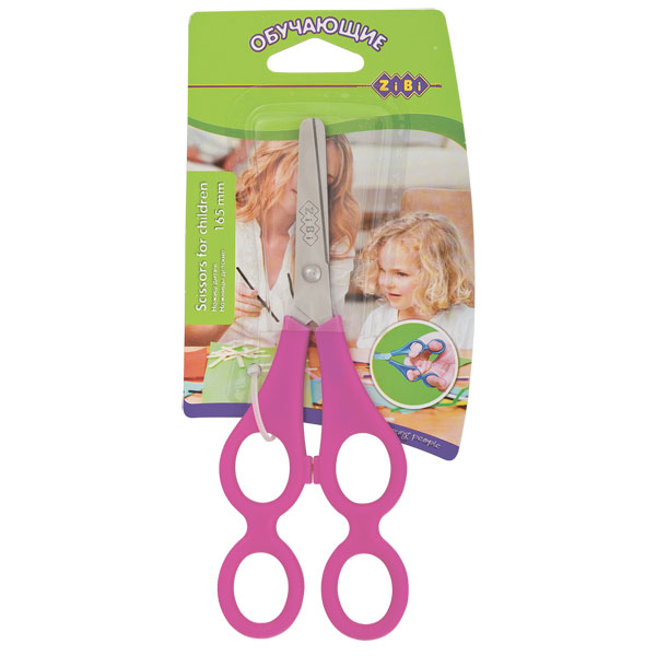 Ножиці дитячі навчальні з лінійкою 16,5см рожеві, блістер, ZiBi