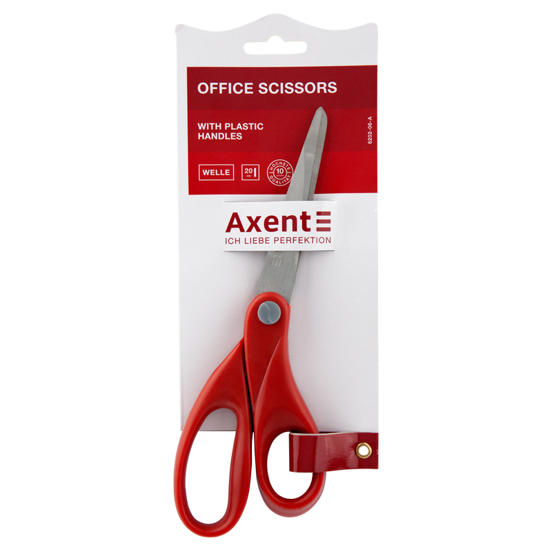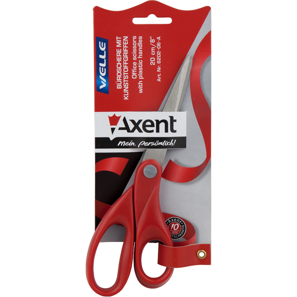 Ножиці канцелярські 20 см, пластикові ручки, Welle, червоні, AXENT