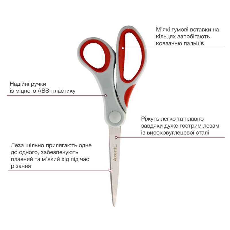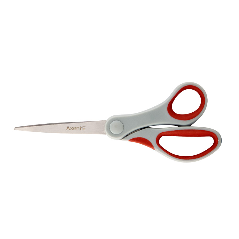 Ножиці канцелярські 20см, з прогумованими вставками, сіро-червоні, AXENT
