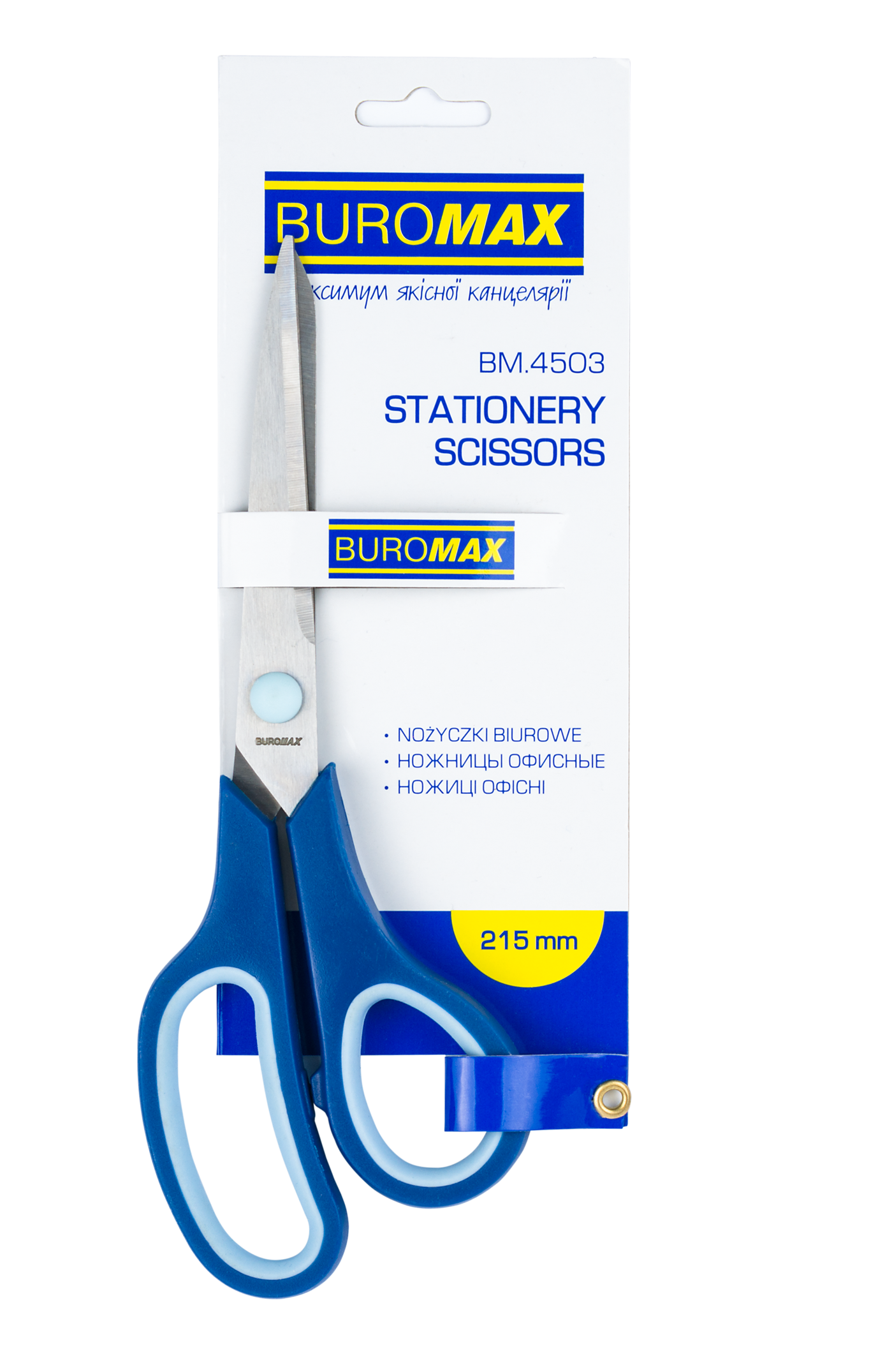 Ножиці канцелярські 21,5см, пластикові ручки з прогумованими вставками BUROMAX