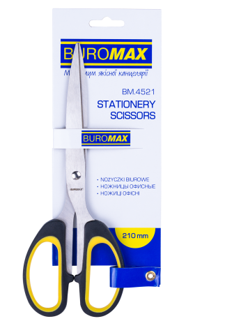 Ножиці канцелярські 21см, суцільнометалеві, ручки з прогумованими вставками, BUROMAX