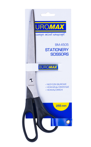 Ножиці канцелярські 25,5см, пластикові ручки, чорні, BUROMAX