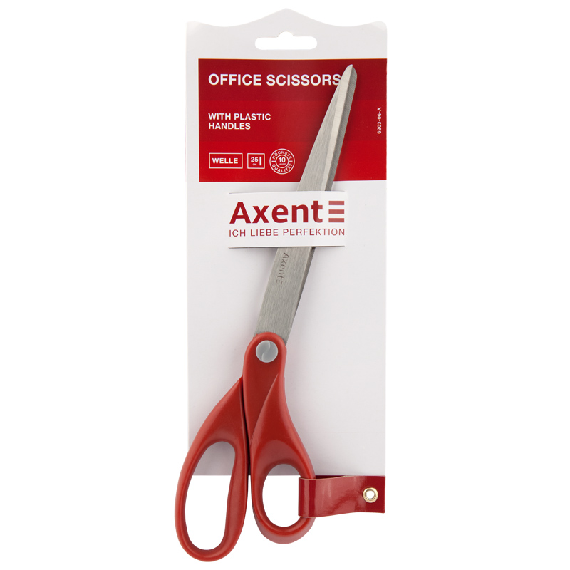 Ножиці канцелярські 25 см, пластикові ручки, Welle, червоні, AXENT