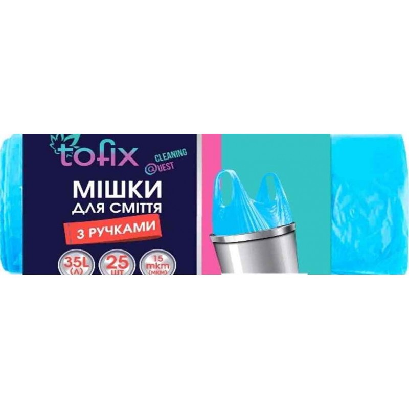 Пакети для сміття 35л (25шт в рул.) 47х60см, з ручками 14мк, сині, TOFIX