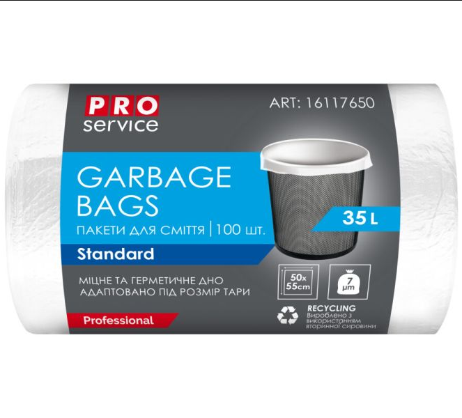 Пакети для сміття 35л 50х55см (100шт в рул.) PRO СЕРВІС