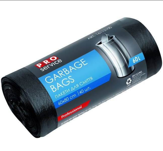 Пакети для сміття 60л, 60х80см (40шт в рул) HD PRO SERVICE