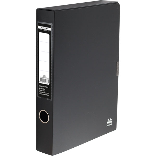 Папка-бокс на липучці пластикова 235х320х55 мм (під формат А4), пластикова, чорна, BUROMAX