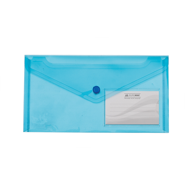 Папка-конверт на кнопці DL, 170мкм, з кишенею для картки, прозора синя, глянсова, BUROMAX