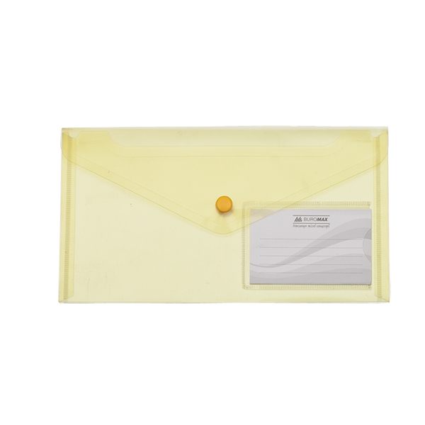 Папка-конверт на кнопці DL, 170мкм, з кишенею для картки, прозора жовта, глянсова, BUROMAX