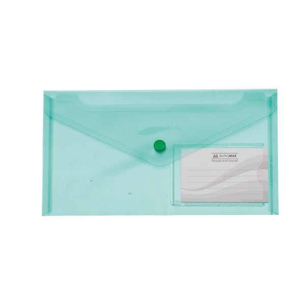 Папка-конверт на кнопці DL, 170мкм, з кишенею для картки, прозора зелена, глянсова, BUROMAX