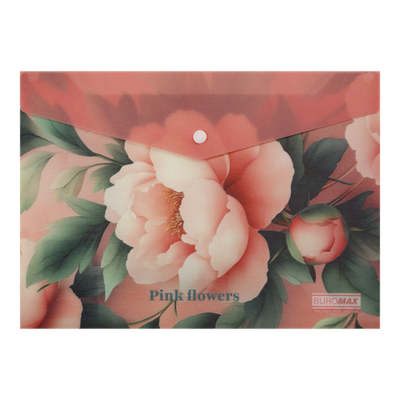 Папка-конверт на кнопці пластикова А4, ARABESKI, 180 мкм, матовий напівпрозорий пластик, рожева, BUROMAX