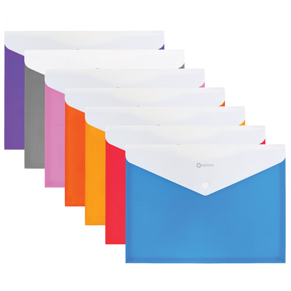 Папка-конверт на кнопці А4, 180мкм, непрозора, з розширенням, асорті, OPTIMA