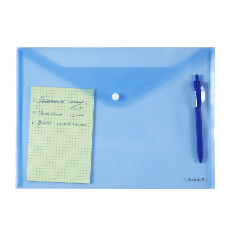 Папка-конверт на кнопці А4, 180мкм, колір синій, AXENT