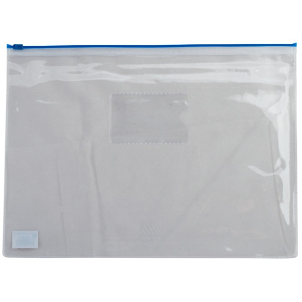 Папка-конверт на блискавці zip-lock А4, 160 мкм, глянсова прозора, колір блискавки синій, BUROMAX